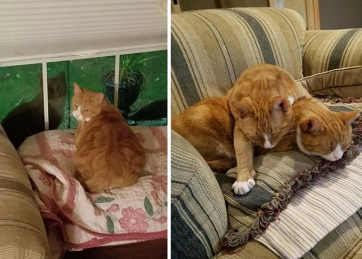 Rescued animals are the best! By rescuing and adopting an animal in need, you save two lives — theirs and yours! Cats particularly remain one of the most rescued pets, as they are so many of them — all around the world. So when an orange tabby was lifted from the streets and made a house pet, his twin brother found his new home and visited him, hanging around their back yard. It would have been so awful to separate the two brothers, so the family ended up adopting them both! We love a happy ending!