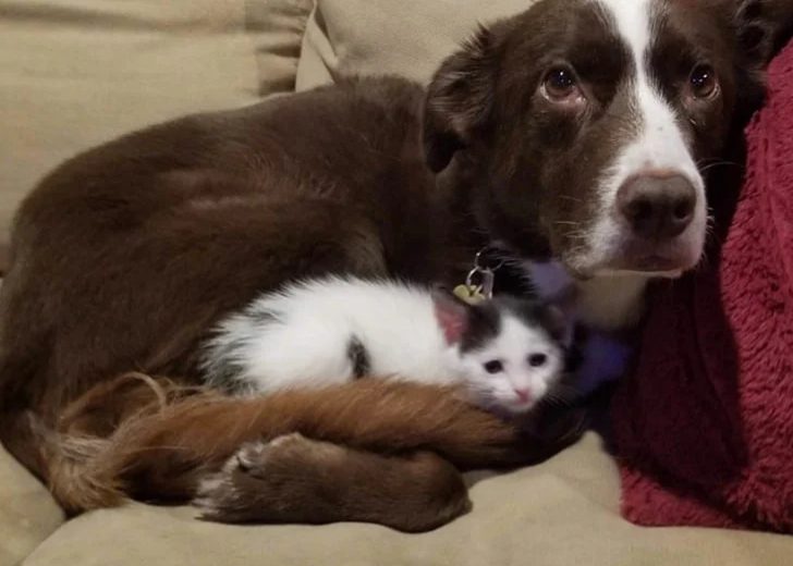 For centuries, it has been perceived that dogs and cats hate each other, and are mortal enemies. But this myth has been busted as there are plenty of multi-pet households which have both dogs and cats, and they get along just fine. In fact, the owner of this dog said that she rescues kittens and fosters them, and so their dog has gotten used to them. In fact, their dog becomes a foster mother for the kittens, makes them feel at ease and snuggles with them when they’re scared or sleepy.