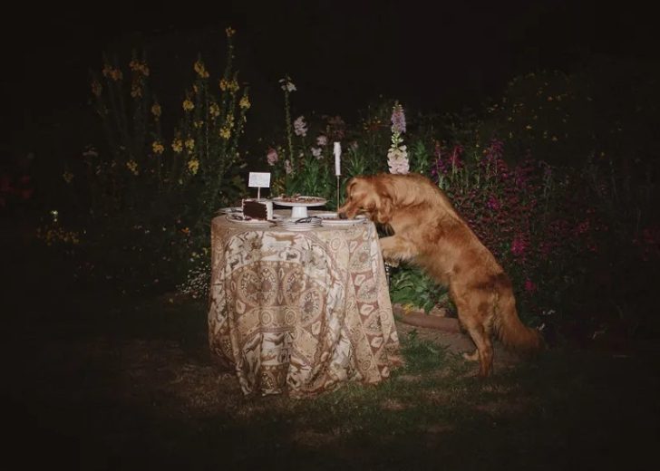Its surely been a difficult day for this pet dog who was invited to his family’s wedding but wasn’t given a table of his own! What a despicable act! The poor guy has to resort to stealing cake crumbs from the table after the grand cake cutting ceremony was over. The lighting and set up was just perfect, lending to this very dramatic scene of thievery. On a serious note, if you do plan to get your dog to your wedding, do ensure that they have a quiet room to rest in, with toys, a bowl of food and water.