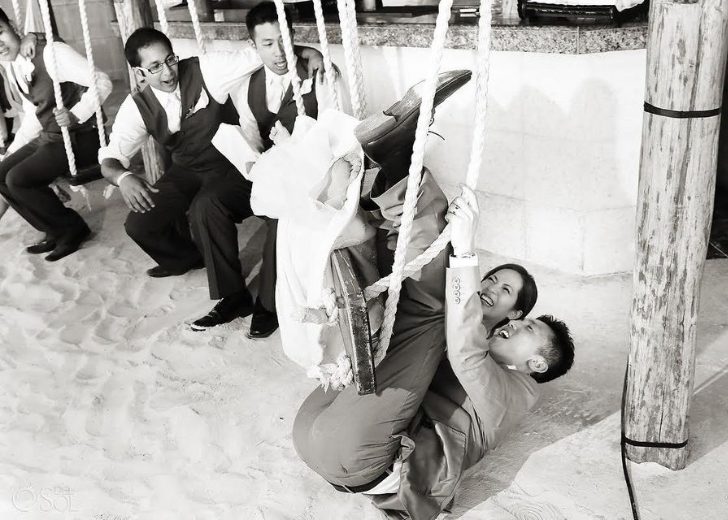 A worthy partner is one who doesn’t let you look foolish alone, and joins in to look foolish with you! Here, the bride had joined her husband and his gang of boys to take photos near a set of swings, but there wasn’t one free for her, so she just sat on the one her husband was seated on. Well, the swing had a mind of its own and decided it was one too many people on it. So with one move and lean behind, the couple fell backwards and landed flat on their backs. But they had a sense of humor and just laughed away the incident. How sweet!